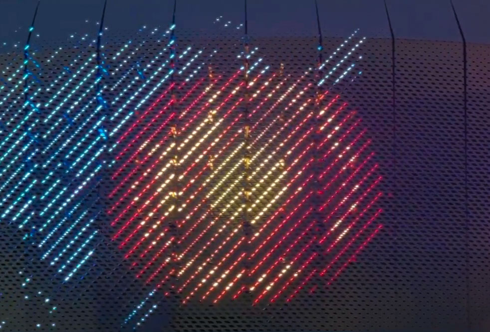 A new video clip shared by @DLPReport on Twitter shows “F.R.I.D.A.Y.”, the AI created by Tony Stark on the façade of Avengers Assemble: Flight Force at Avengers Campus Paris.
