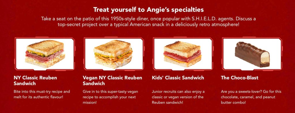 Super Diner (formerly Café des Cascadeurs) originally offered Reuben Sandwiches, which received a lukewarm response from Marvel fans and park goers.