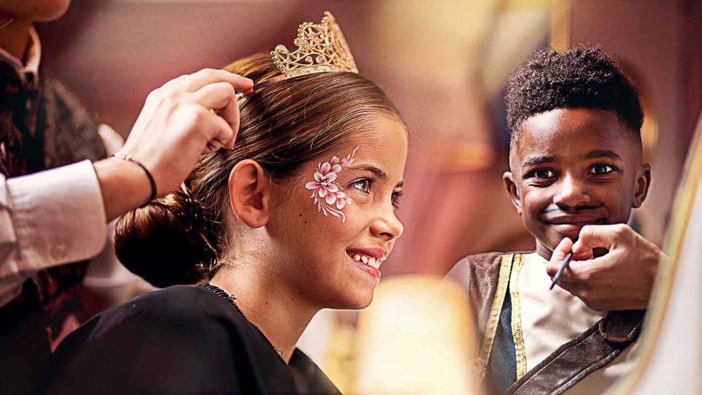 My Royal Dream offers styling services for young guests, transforming them into princesses or princes through makeup, hair, nails, costumes, and accessories. Different packages are available for children and adults, with costumes reserved for those aged three to fourteen. The experience concludes with a professional portrait session.