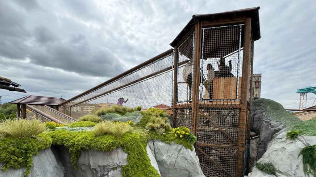 In honor of the old “Zauberwelt,” a pedestal featuring a troll statue and the inscription “1984-2023” now stands at the entrance. A completely new addition is the “Yomi Adventure Trail,” featuring suspended bridges, climbing nets, towers, and slides. Although the entire route is still under construction, work is ongoing at several locations.