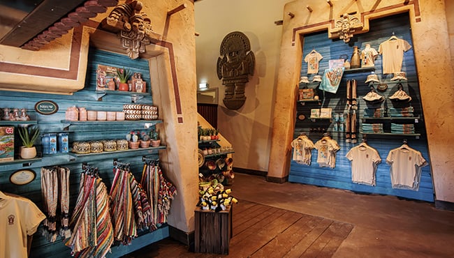 Park goers can explore the store both before and after their white-water adventure. The queue includes a walkway that takes visitors through the store, allowing them a sneak peek at the available souvenirs. After the ride, guests exit through Cascada, where they can purchase items such as towels, caps, hats, t-shirts, key chains, magnets, bags, keycords, and figurines featuring the Piraña logo. Additionally, the store offers soft toys, pottery, and bracelets with a South American flair.