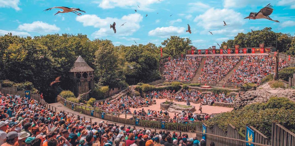 Puy du Fou emphasises that they are not a typical theme park. “Our parks are not fake stage sets built with plastic; there are no neon flashing lights and rollercoasters. Everything we do must be real, built using the crafts and materials of the time period they represent, within wooded areas and beautiful gardens, which become the setting for world-class shows and immersive cultural and historical experiences – bringing history to life.” In France, the shows are centered around themes such as the Roman Empire, the Musketeers, the Vikings, Joan of Arc, the heroic soldiers of the First World War, and the pioneers of cinema.