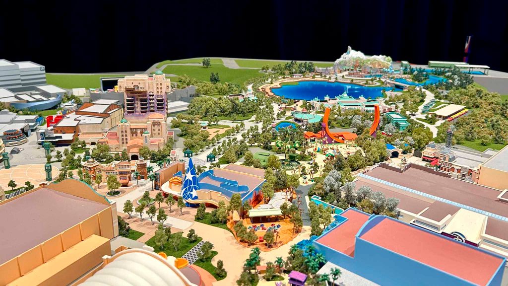 At the D23 Disney Fan Event, Disney revealed a detailed model of “Disney Adventure World,” the newly rebranded second gate theme park at Disneyland Paris, previously known as Walt Disney Studios Park.