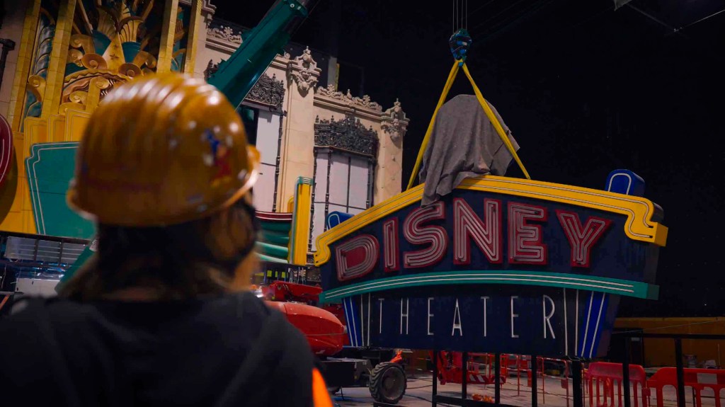 As part of the updates, Imagineers have recently unveiled the impressive façade and marquee of the Disney Theater, which weighs in at three tons—comparable to a baby blue whale.