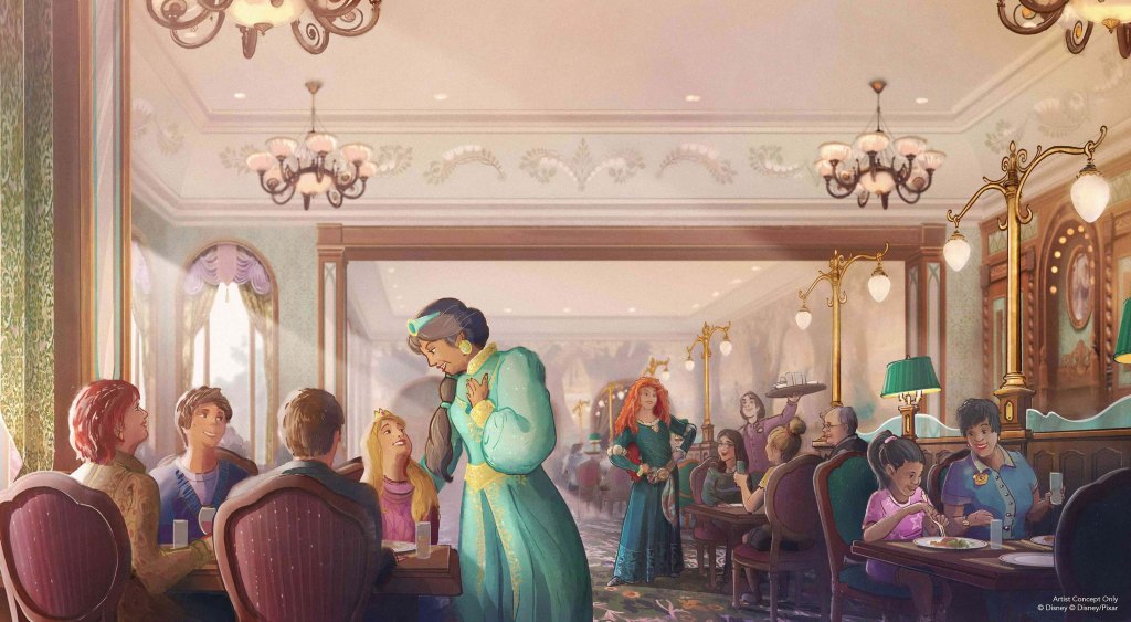 In addition to the new attractions, Adventure Way will include the Regal View Restaurant & Lounge, where guests can dine with Disney Princesses and view a new nighttime spectacular that will illuminate Adventure Bay’s central lake. The entertainment team at Disneyland Paris has already begun testing this show, which will feature water screens, fountains, special effects, and choreographed drone performances.