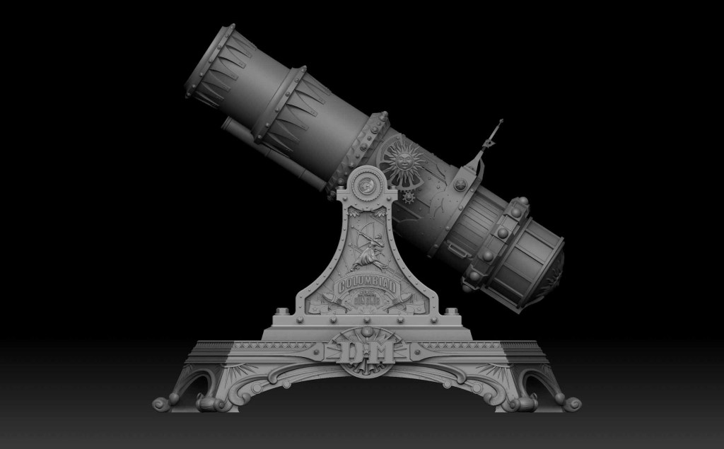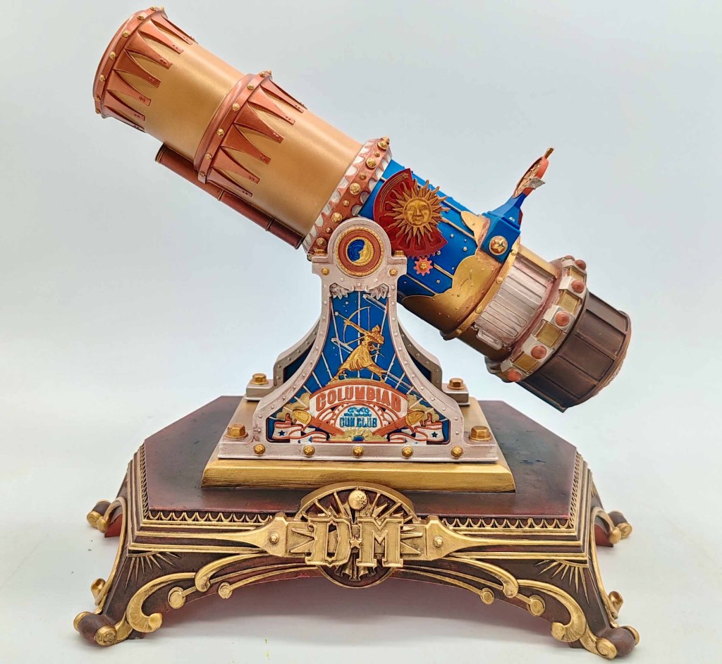 Columbiad Cannon Replica: A detailed miniature version of the cylindrical structure mounted on the attraction’s roof. Product developer Régis Alart, who experienced the original ride in 1995, led the design process to capture the architectural element’s intricate details.